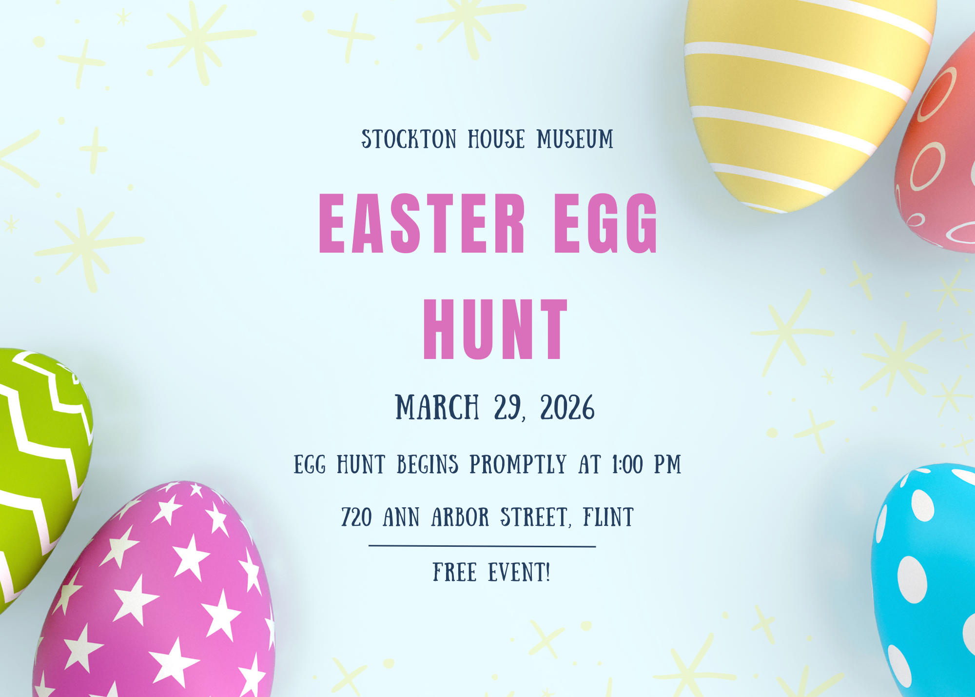This is a FREE event that takes place on our front lawn. This is a rain or shine event so dress for the weather! Egg hunt begins promptly at 1:00pm.